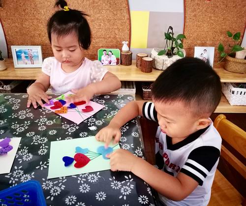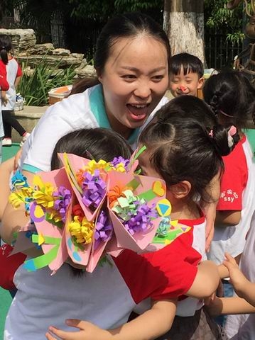 金秋九月,桂树悄然吐蕊,佳节如期而至,全员师生迎来了第33个教师节。 国标部的哥哥姐姐走进小班的教室和弟弟妹妹一起制作精美的小礼物,一双双肉嘟嘟的小手在卡片上涂涂、画画、贴贴,画面其乐融融;一束花、一颗爱心、一份贺卡、一串项链……涂抹的是爱,表达的是情。沐浴着阳光的操场上,青年教师用热情洋溢的舞蹈拉开序幕,玖儿小朋友和她的妈妈对老师们说着心里话,可爱的孩子们小心翼翼的爱护着手中的宝贝,那是送给敬爱的老师们礼物……此刻,爱在生根发芽。还记得吗?当我们第一次离开爸爸妈妈,走进幼儿园,是老师向我们伸出温暖的双手;还记得吗?当我们遇到困难是老师一遍又一遍教会我们解决问题……当主持人宣布可以给老师送礼物了,孩子们蜂拥围向自己的老师,和老师抱一抱、亲一亲、用稚嫩的话语表白他们对老师的喜爱“老师我真的很爱您”。这一刻,爱在蓬勃生发。乘着歌声的翅膀,载着幸福的期盼,孩子和老师一起乘坐幸福专列,在快乐的游戏中一起向幸福出发。 国际混龄大家庭在国际部南艺校区的操场上用心扬帆,让爱起航,大手牵小手一起共度难忘的教师节。“幼儿园像我家,老师爱我我爱他……”“爸爸妈妈去上班,我上幼儿园……”“ ……我调皮我淘气,老师耐心来教育。”一首首耳熟能详的歌曲,孩子用最动听的歌声唱响对老师妈妈的爱;孩子们和爸爸妈妈亲子制作了小小的书签、精美的贺卡、鲜艳的花束,他们用独特的方式表达着对老师的尊敬和感恩;弟弟妹妹和哥哥姐姐们手拉手欢快的跳着、笑着……“孩子,我承诺……”青年教师用最动情的声音吟诵着,小小的诗句表达着老师们对职业的那份热爱与坚守,对孩子们真挚的承诺。我们很富有,我们曾经走进过那么多孩子的心里,这些温暖的经历和纯净的感情是每一位幼师人一生的财富。 托班宝宝入园才一个多星期,和老师们度过了第一个教师节,他们用自己独有的方式庆祝教师节。瞧,托班的宝贝们和老师们玩《躲猫猫》游戏,惊喜连连,笑声连连;和老师一起念《老师本领大》儿歌,边念儿歌边做动作;和家长一起制作爱心小书,小书装扮得非常精美,祝福语也很感人;和老师一起制作爱心卡片,一双双小手在卡片上印一印、点一点、贴一贴,一个个小爱心拼在一起,卡片顿时鲜活了起来……制作后宝贝们将卡片送到老师手中,一句句稚嫩的话语“老师我爱你”、“老师节日快乐”,向老师们表达了节日的祝福,。 爱在九月,爱在孩子们小小的心灵深处种下尊师重教的种子。老师,因为有你,我的童年不孤单;孩子,因为有你老师的青春不迷茫,祝福老师们节日快乐,幸福健康,让中华的传统美德代代相传,向幸福出发!