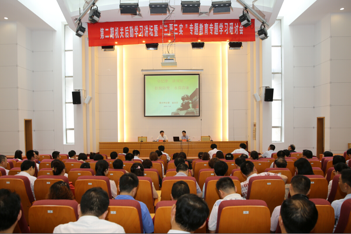 2015年7月20日下午,泰州市机关事务管理局在召开第二期机关后勤讲坛暨“三严三实”专题教育学习研讨会。局党组书记、局长封新华主持会议,局系统全体党员和局中层以上干部参加了会议。