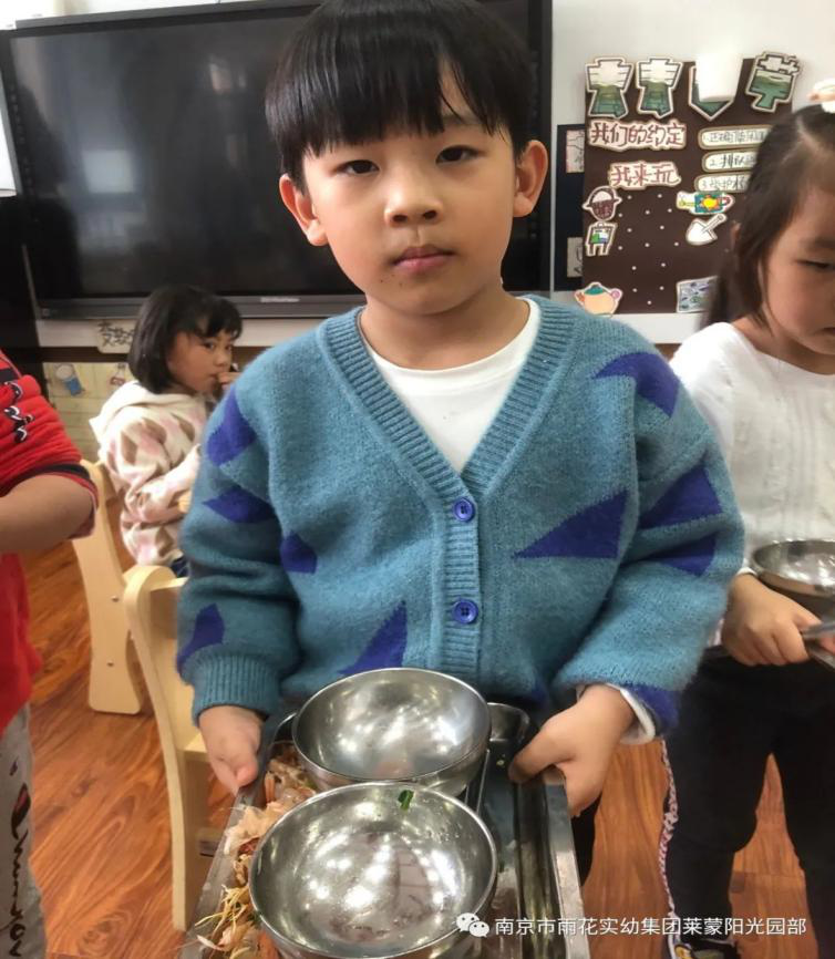 为了在幼儿园里深入推进光盘行动,全园各班级改变了原有的取餐模式改为了自主进餐模式。